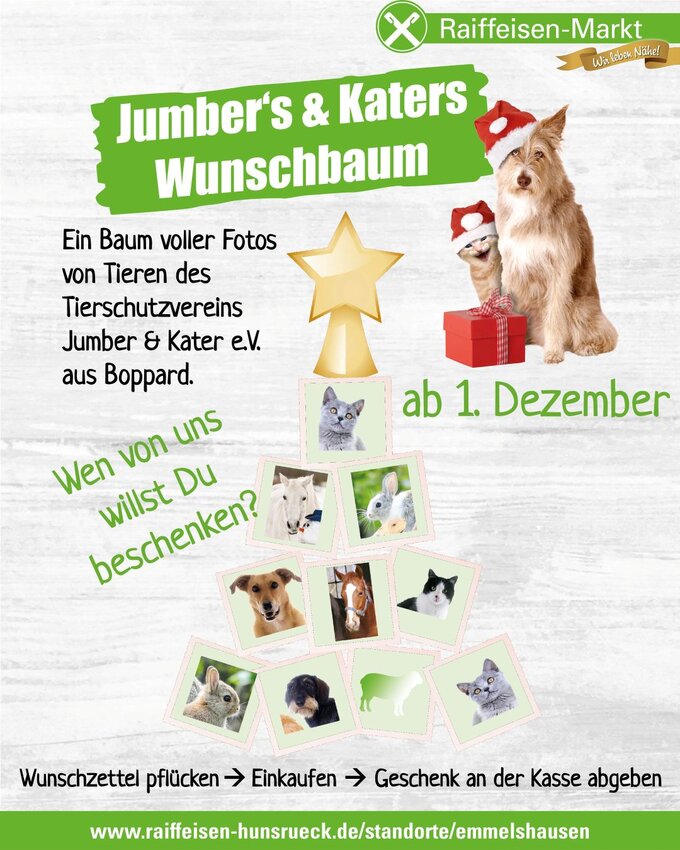 Für den Tierschutzverein Jumber & Kater, sammeln wir Geschenke. Nutzen Sie Ihren vorweihnachtlichen Besuch bei uns, um den Tieren dort eine Freude zu machen.