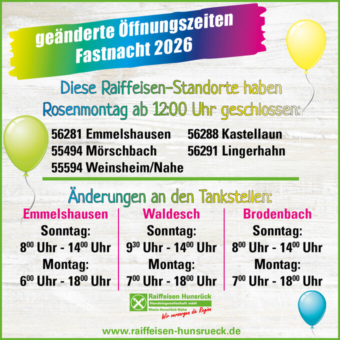 Die größte Auswahl finden Sie in den Raiffeisen-Märkten Emmelshausen, Mörschbach, Weinsheim und Kastellaun.